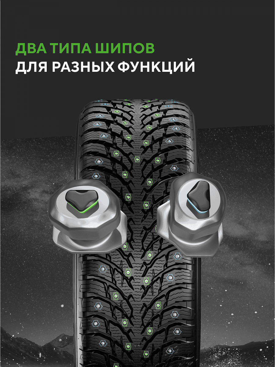 достигается благодаря ошиповке двумя видами шипов. Шипованная шина для внедорожников